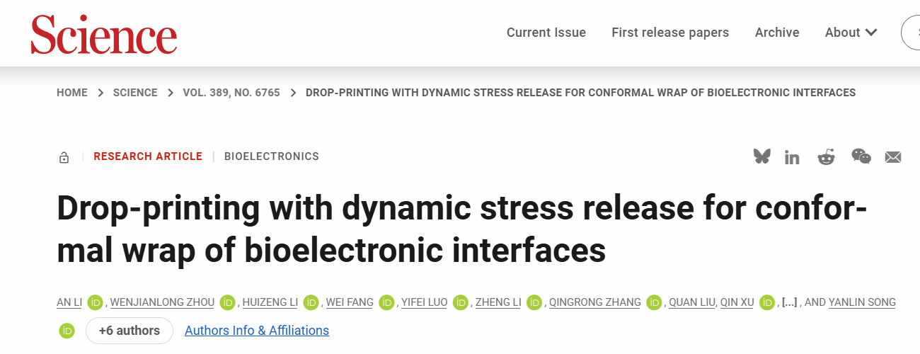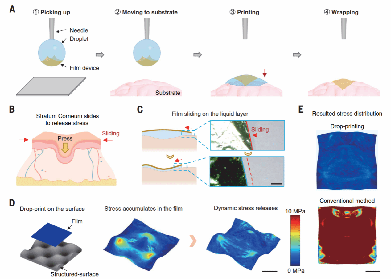 (通讯员:方维)天津大学机械工程学院力学系方维副研究员与中国科学院、首都医科大学附属北京天坛医院等单位合作在柔性薄膜无损转移相关领域取得最新研究成果,近期在Science期刊上发表了题为 “Drop-printing with dynamic stress release for conformal wrap of bioelectronic interfaces” 的研究论文。