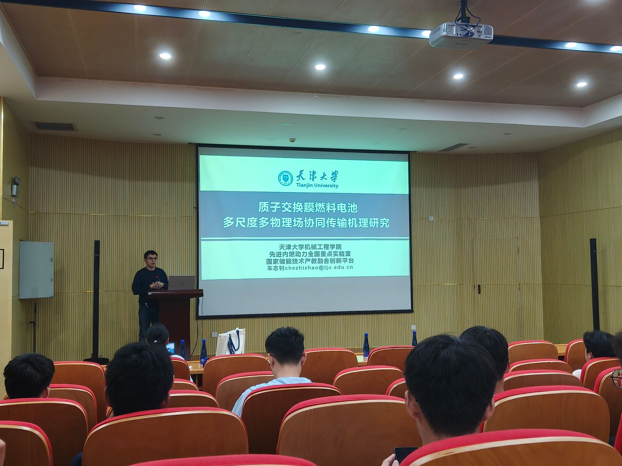 随后,能动系老师就各自的科研团队、研究领域、在研项目、研究成果等方面进行了详尽介绍。车志钊老师和刘雪玲老师分别以“质子交换膜燃料电池多尺度多物理场协同传输机理研究”、“先进地热综合利用与高效地热储能研究”为主题,介绍了团队的成员组成、研究方向、科研设施等,极大地激发了同学们的兴趣。