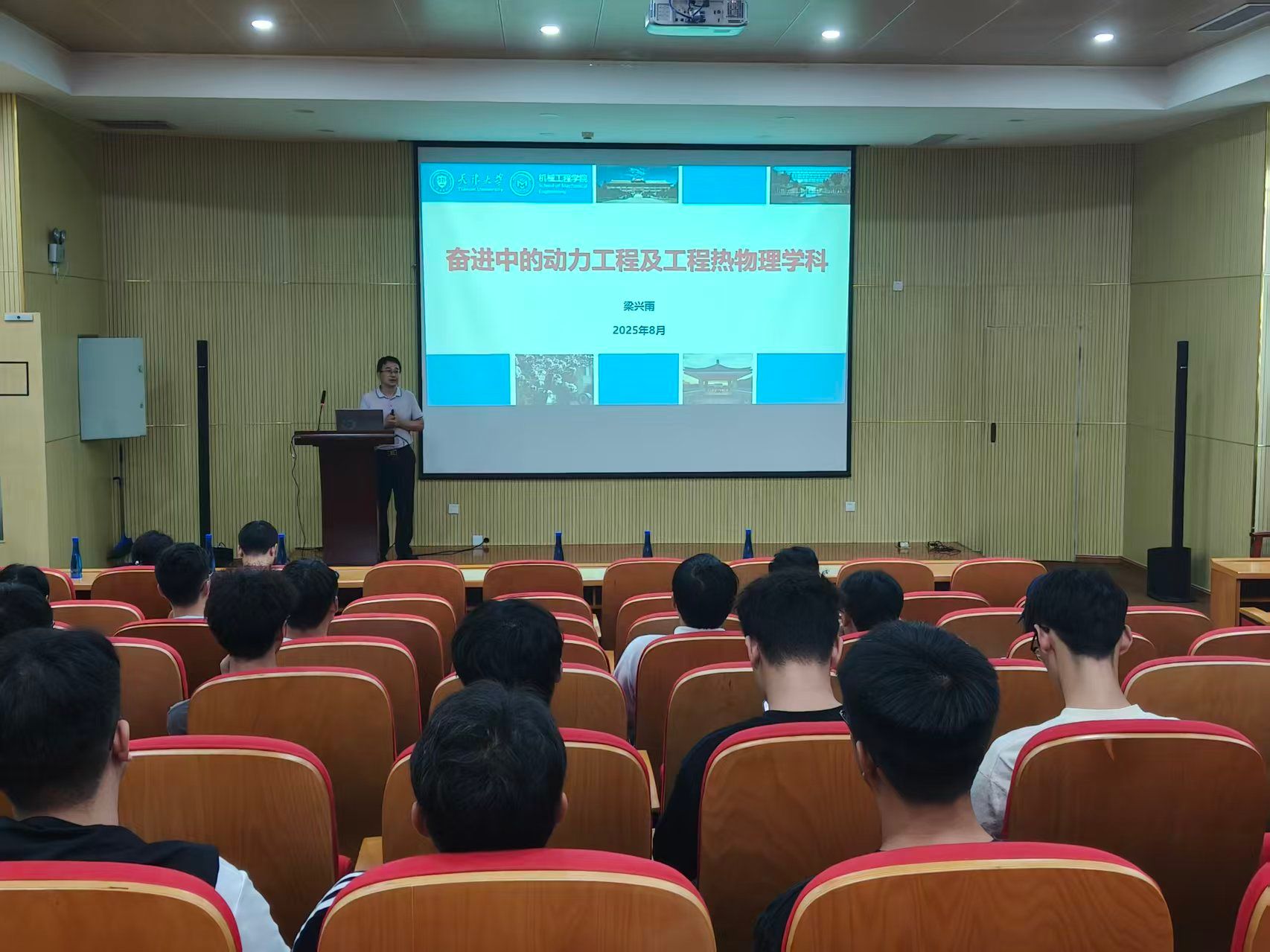 会议伊始,梁兴雨主任首先对2025级研究生新生的到来表示热烈欢迎。随后,以“奋进中的动力工程及工程热物理学科”为主题,从学科历史沿革、师资力量、培养模式、科研条件等方面进行了详细的介绍,让同学们对学科的发展有了深入的了解。同时他强调了导师在研究生培养过程中的关键作用,希望同学们能充分了解各个研究方向,结合自身兴趣与长远规划做出合适自己的选择。