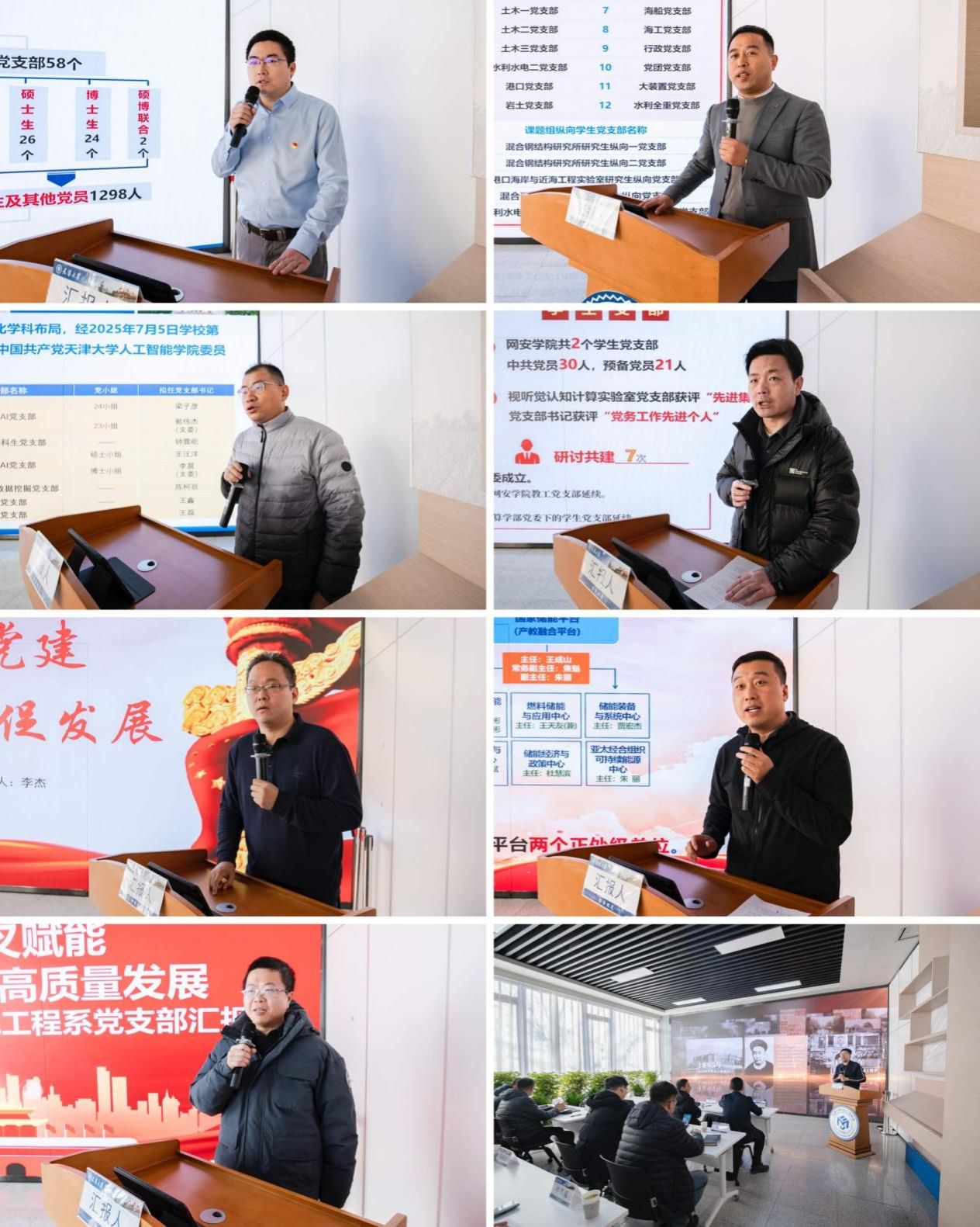 在党建工作交流环节,来自不同学院的七位教工党支部书记结合各自工作实际做了精彩分享。机械学院潘立志以“党支部+课程思政”为核心,介绍了通过常态化磨课研讨、搭建课程思政工作室,推动思政元素与专业教学精准融合的探索路径;建工学院徐杰分享了以党建引领重大工程攻关、推动学科交叉融合的实践;网安学院武南南重点介绍了在师生联学、服务社会中发挥支部战斗堡垒作用的经验;人工智能学院饶国政就如何推动党建与科研互促共进进行了系统阐述;计算机学院汤善江交流了在青年教师培养、团队建设中强化政治引领的路径;软件学院李杰分享了以作风建设促进师德师风建设的相关举措;未来技术学院李定杰立足新工科背景,深入探讨了党组织引领人才培养模式创新的思路与实践。与会人员围绕“深化理论学习成效”“推动党建与业务深度融合”“巩固作风建设成果”三大主题展开了热烈而富有成效的讨论,在交流中碰撞思想,在探讨中凝聚共识。