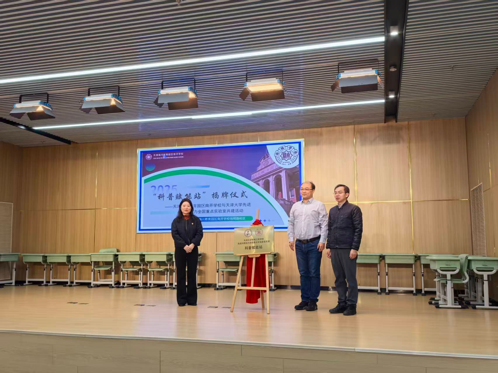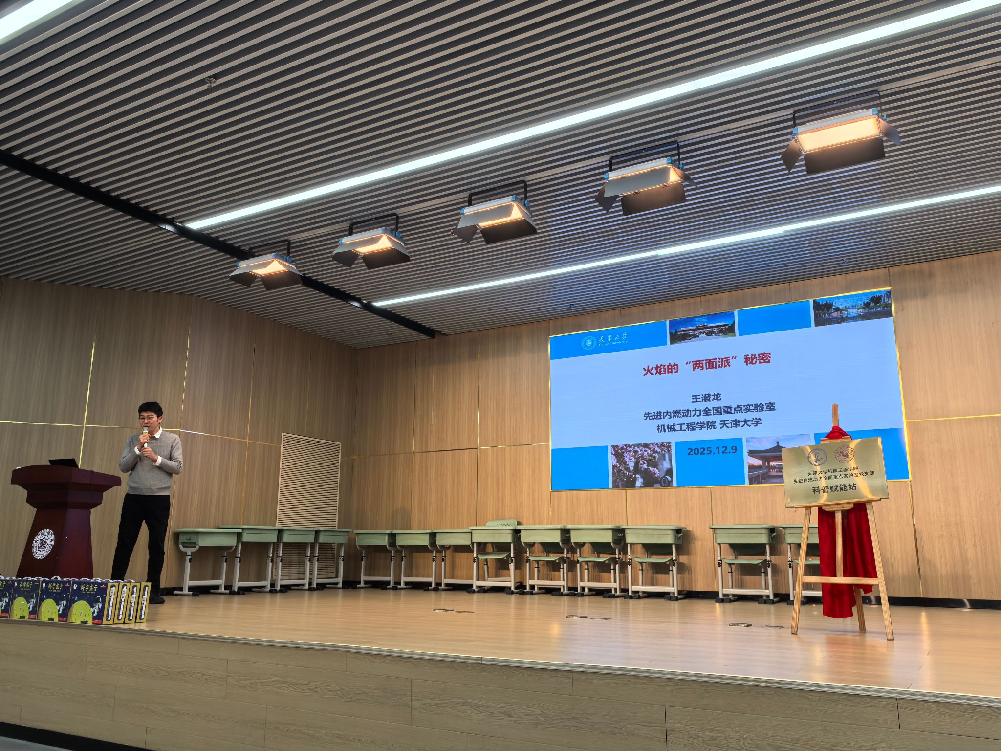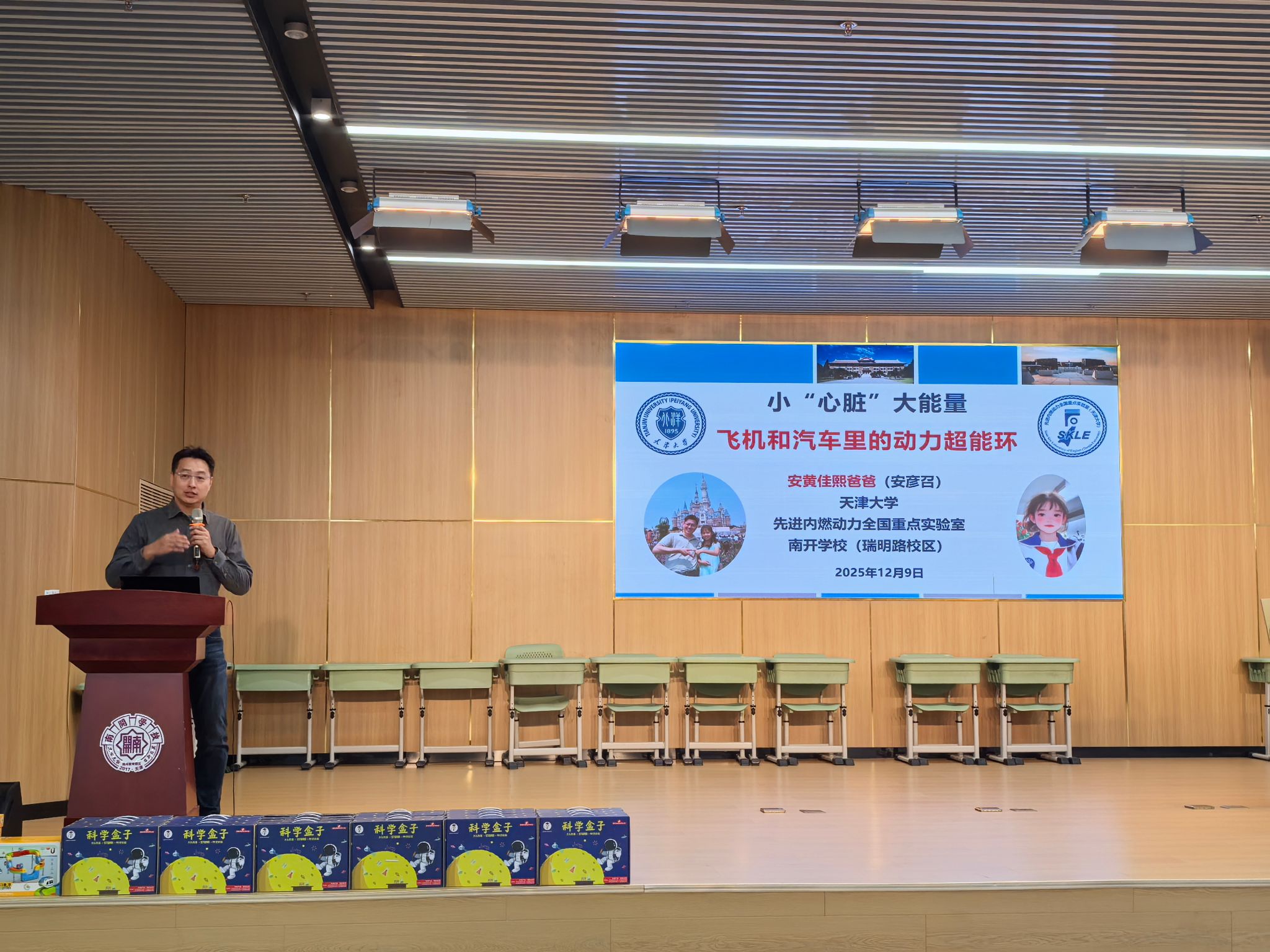 (通讯员:刘智 孙凯)为深入贯彻落实习近平总书记关于科技创新与科学普及的重要指示精神,切实推进全国高校“双带头人”党支部书记“强国行”专项行动建设,2025年12月9日上午,先进内燃动力全国重点实验室党支部(以下简称实验室支部)赴天津市海河教育园区南开学校瑞明路校区开展了“科教融合育棠苗 科普赋能强国行”专题科普活动,并进行了科普赋能站揭牌仪式。先进内燃动力全国重点实验室副主任李云强、南开学校瑞明路校区管理部部长胡小玉出席活动。