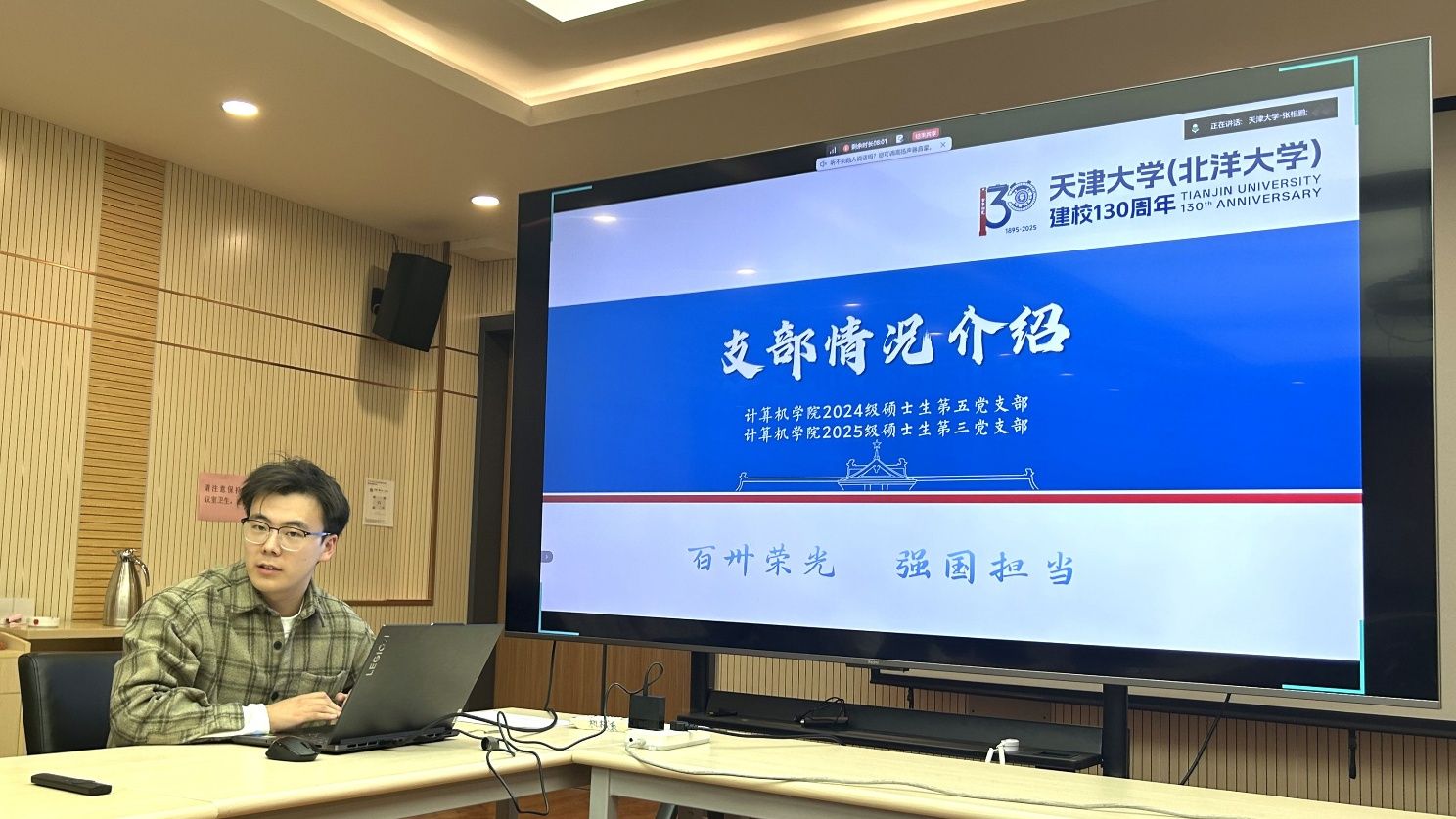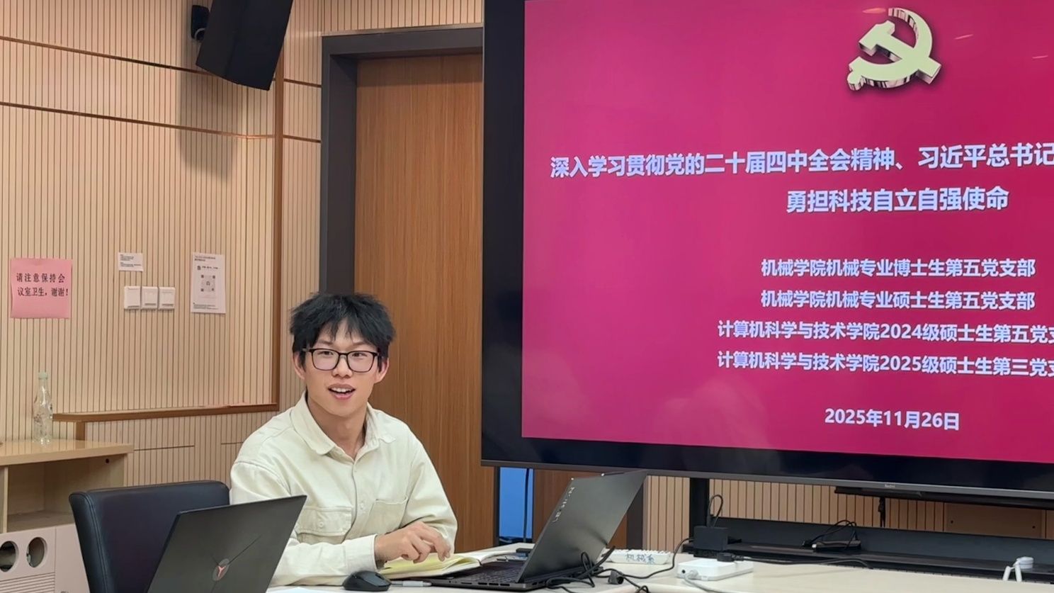 (通讯员:张相鹏 赵旭东 苏丽丽)为深入学习贯彻党的二十届四中全会精神,认真领会习近平总书记给天津大学师生重要回信的深刻内涵,积极响应总书记对广大师生服务国家重大战略的殷切期望,11月26日晚,机械专业博士生第五党支部、机械专业硕士生第五党支部、计算机科学与技术学院2024级硕士生第五党支部、2025级硕士生第三党支部在37教南楼216会议室共同举办联学共建活动。活动由机械专业博士生第五党支部书记张相鹏主持。