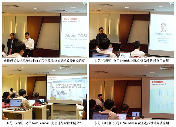 7 月 16 日活动伊始,首先由南洋理工大学机械与宇航工程学院院长黄竟朝教授致欢迎词,随后,来自东芝(亚洲)公司的本次活动负责人 Shinichi HIROKI 先生,以及参与本次活动的指导设计师 ONO Misaki 女士和 SON Youngill 先生分别向大家进行了公司简介、本次设计工作坊主题以及设计方法介绍。