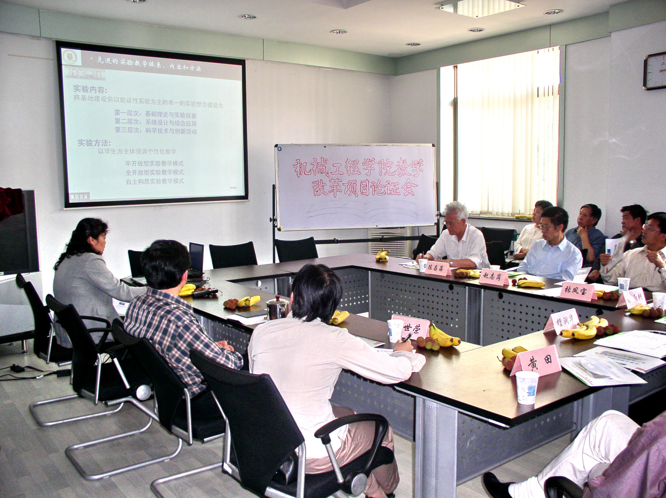 5月22日下午,机械学院召开教学改革项目的专家论证会,我校自动化学院孙雨耕教授,原设备处处长陈昌藻教授,机械学院赵志岗教授,图书馆馆长张凤宝教授和河北工业大学副校长檀润华教授5名校内外专家应邀作为专家组成员出席,参与三个项目建设的20余名教师参加了论证会。会议由教务处副处长王世荣主持。
