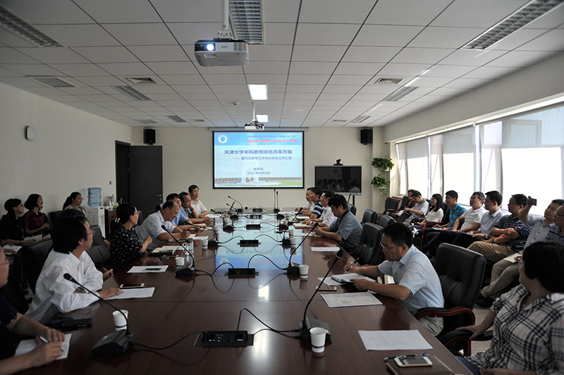 (通讯员 张研 摄影 刘爽)9月6日,天津大学本科教育综合改革方案系列宣讲会在机械工程学院举行。教务处处长白海力、副处长谷钰、赵伟、靳楠等教务处领导和老师参加宣讲。学院党委书记宋轶民、院长王天友、副院长尧命发、曹树谦、副书记刘秋菊等学院领导班子成员,学院各学科主任,各专业本科责任教授、各学科研究生责任教授、本科教学团队责任岗教师、本科生教务员、研究生教务员等30余人参会。会议由副院长曹树谦主持。