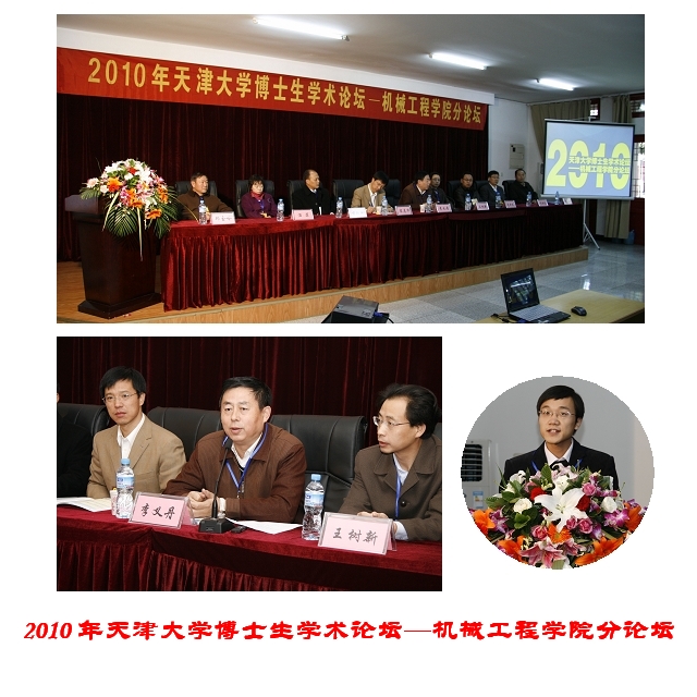 2010年10月30日,“2010年天津大学博士生学术论坛――机械工程学院分论坛”于天津市西青区杨柳青庄园会议中心隆重召开。天津大学党委副书记李义丹应邀出席开幕式并讲话。研究生院学位办主任陈志华,机械工程学院党政领导王树新、宋轶民、陈金龙、尧命发、汪菲、邢金岭、杨志永出席开幕式。机械工程学院2008级博士生及部分指导教师近100人参加了开幕式。