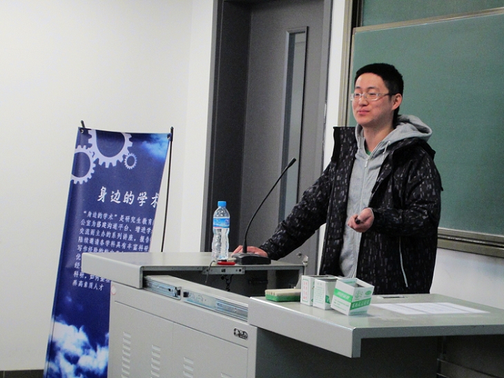 董立辉博士从“科学研究”的定义破题,追本溯源,让同学们从根本出发点上重新审视即将面临的问题。他说具体的科研流程应该是,明确当前的目标,提炼科学的问题,运用科学的方法 ,得到科学的结果 ,科学地分析结果,总结概括撰写科技论文。在科研方法上,他建议同学们最好一个阶段完成一个阶段的内容,在表面有限的资源上提炼出科学问题,找到适合自己的方式,形成适合自己的风格,确定适合自己的目标。在文献阅读上,他用科学计算的方式,向大家展示了了解一个专业方向所需要阅读的文献数量和时间,让同学们对于文献阅读有一个更直观的认识;告诉同学们要努力发掘作者的创新思路,巧妙地引用新的学术发现,从而积累科研资本,培养科研素养;同时在读文章时要记得,看看别人的分析思路,学习数据结果的不同表达方式 ,与自己相关内容的结果对比。在论文写作方面,他对文章结构的大体框架做了简要介绍,并在一些写作细节上给同学们提出了很多十分实用宝贵的建议:“在写Abstract 时,用三句半话简要精炼地概括自己的文章的内容,在 Introduction中逐步引出所研究的内容,并突出其重要性”等等细节,让同学们在实际写作案例中有了更进一步的深刻体会。同时他也在投稿文章的格式,图片,列表,引用参考文献等细节问题对同学做了详细的说明。