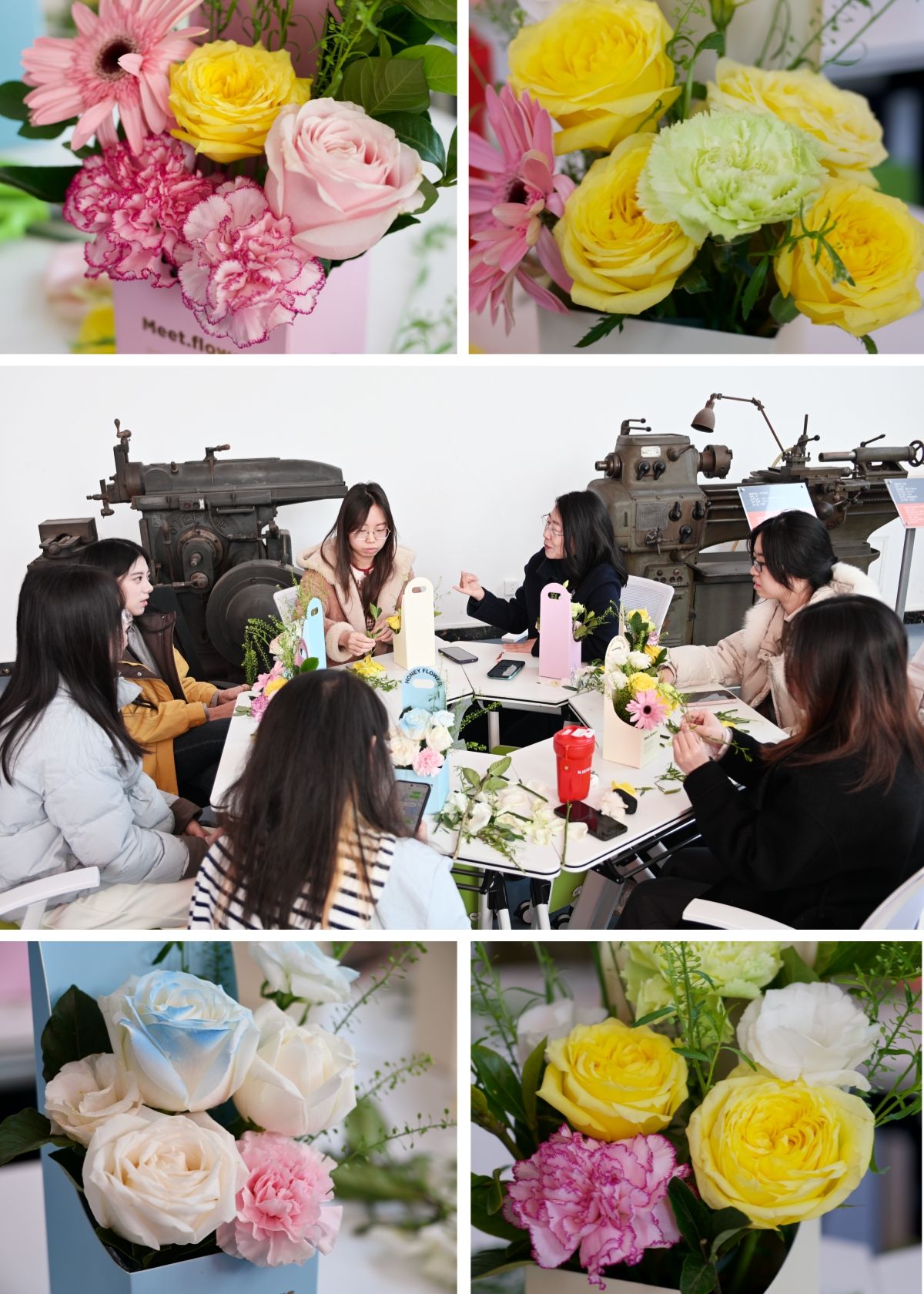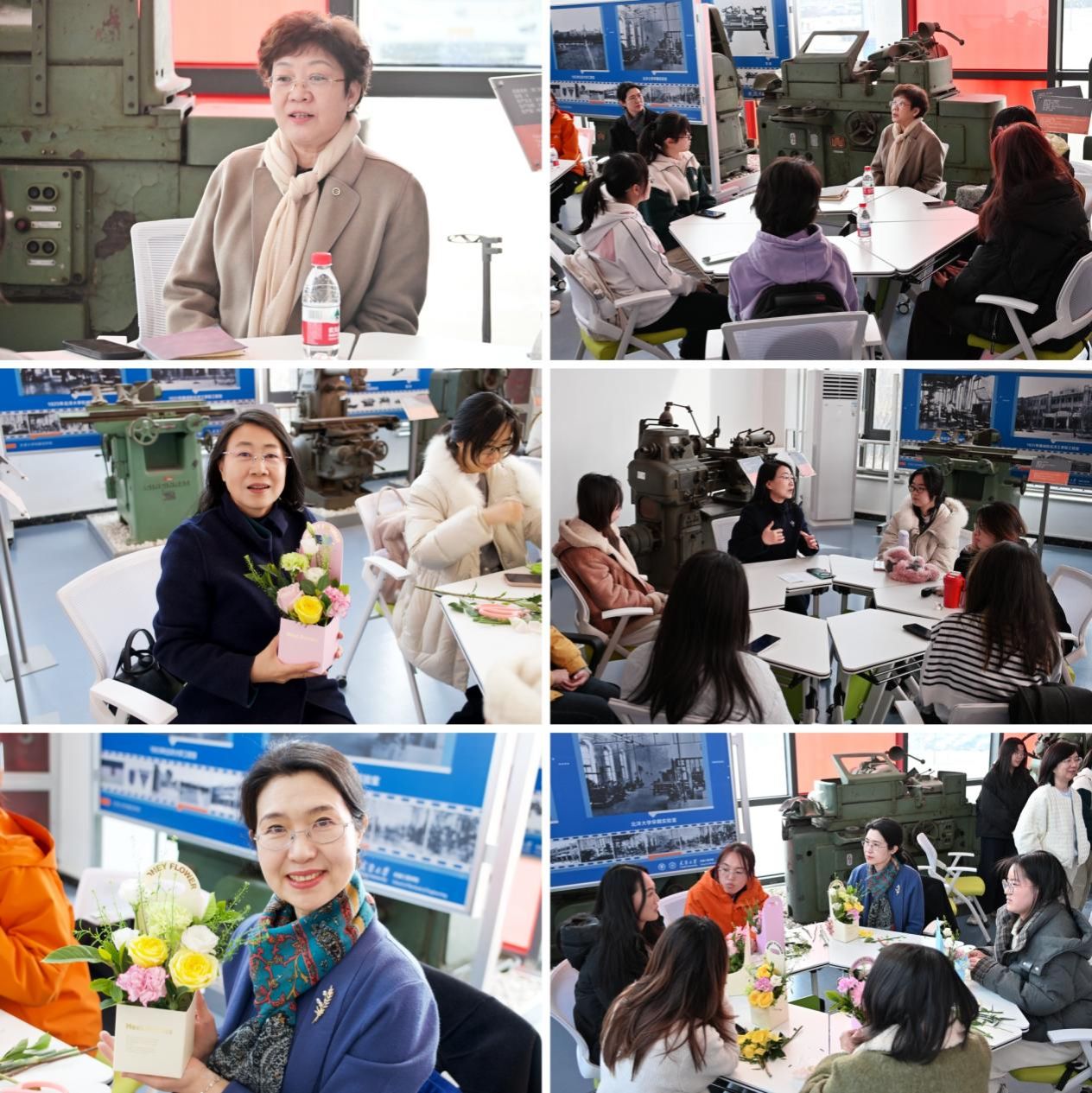 三位老师的分享真实真挚、饱含期许,让在场学生深受启发与鼓舞。分享环节结束后,活动进入插花美育与互动交流环节,师生们共同参与插花创作,在感受美学魅力、放松身心的同时,女学生主动围绕专业学习、科研探索、职业规划等问题向老师们请教,老师们结合自身经历耐心解答、悉心指导,在轻松温馨的氛围中拉近了师生距离,让巾帼榜样的力量潜移默化传递。
