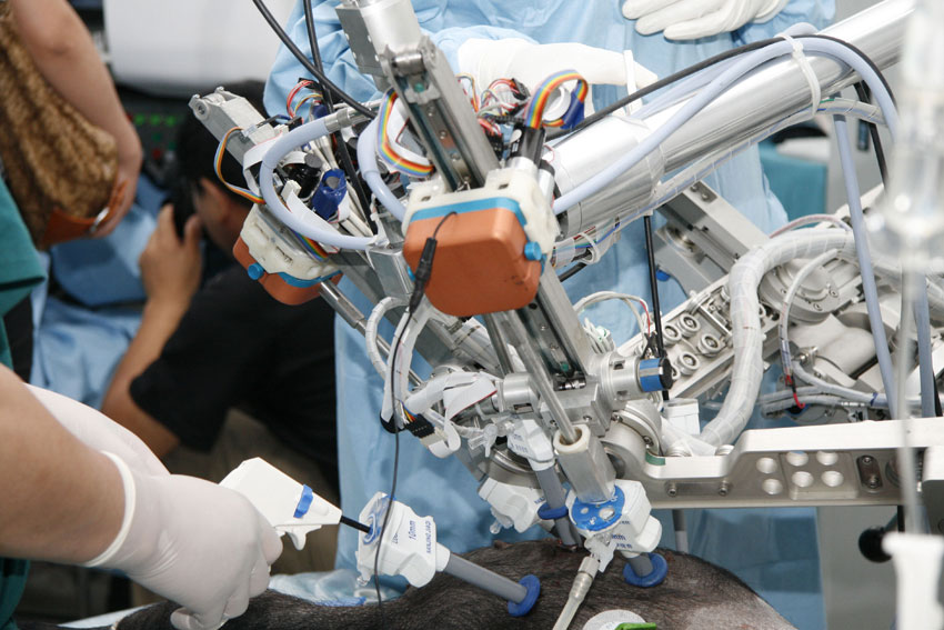 国外已经研发出“达芬奇机器人手术系统”,并逐渐成为微创外科发展趋势。自2000年该系统通过美国FDA认证后,在普通外科、心脏外科、泌尿外科、妇产科等领域开展了机器人手术。截止2010年3月31日,全球已销售该系统1482台。2006年,中国人民解放军总医院心外科首次引进达芬奇外科手术机器人系统。国内已有多家医院引进该系统,并进行了成功的临床应用。