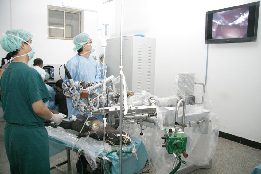 鉴定会上,来自天津医科大学总医院的医务人员还利用“妙手A”系统进行了猪胆囊切除现场手术演示,并进行了系统的综合测试,在动物实验中验证了该系统的性能指标,获得了满意的手术实验结果。
