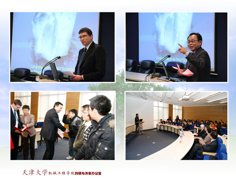 “天津大学奇石乐奖学金”是瑞士奇石乐股份有限公司设立的专项奖学金,用于资助和奖励天津大学内燃机专业的研究生,此次共有宾峰等6名博士生和3名硕士生获得奖学金。颁奖典礼上,瑞士奇石乐集团技术总裁Peter Wolfer,奇石乐亚洲及中国有限公司总裁Michael Raber分别发表了热情洋溢的讲话。副校长舒歌群代表学校向奇石乐公司表示感谢,希望获奖研究生刻苦学习、潜心科研,全面提高综合素质,做出高水平科研成果回报社会,同时也希望校企双方在今后的工作中展开更加深入的合作。