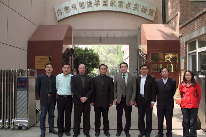 近日,美国科罗拉多州立大学清洁能源研究院和发动机与能源转换实验室主任Bryan Willson教授和助理教授Daniel B. Olsen博士访问内燃机燃烧学国家重点实验室(以下简称重点实验室)。机械学院副院长、重点实验室主任尧命发,环境学院院长陈冠益,机械学院副院长王天友,能源与气候变化研究院副院长赵军,重点实验室副主任谢辉等热情接待了来宾。