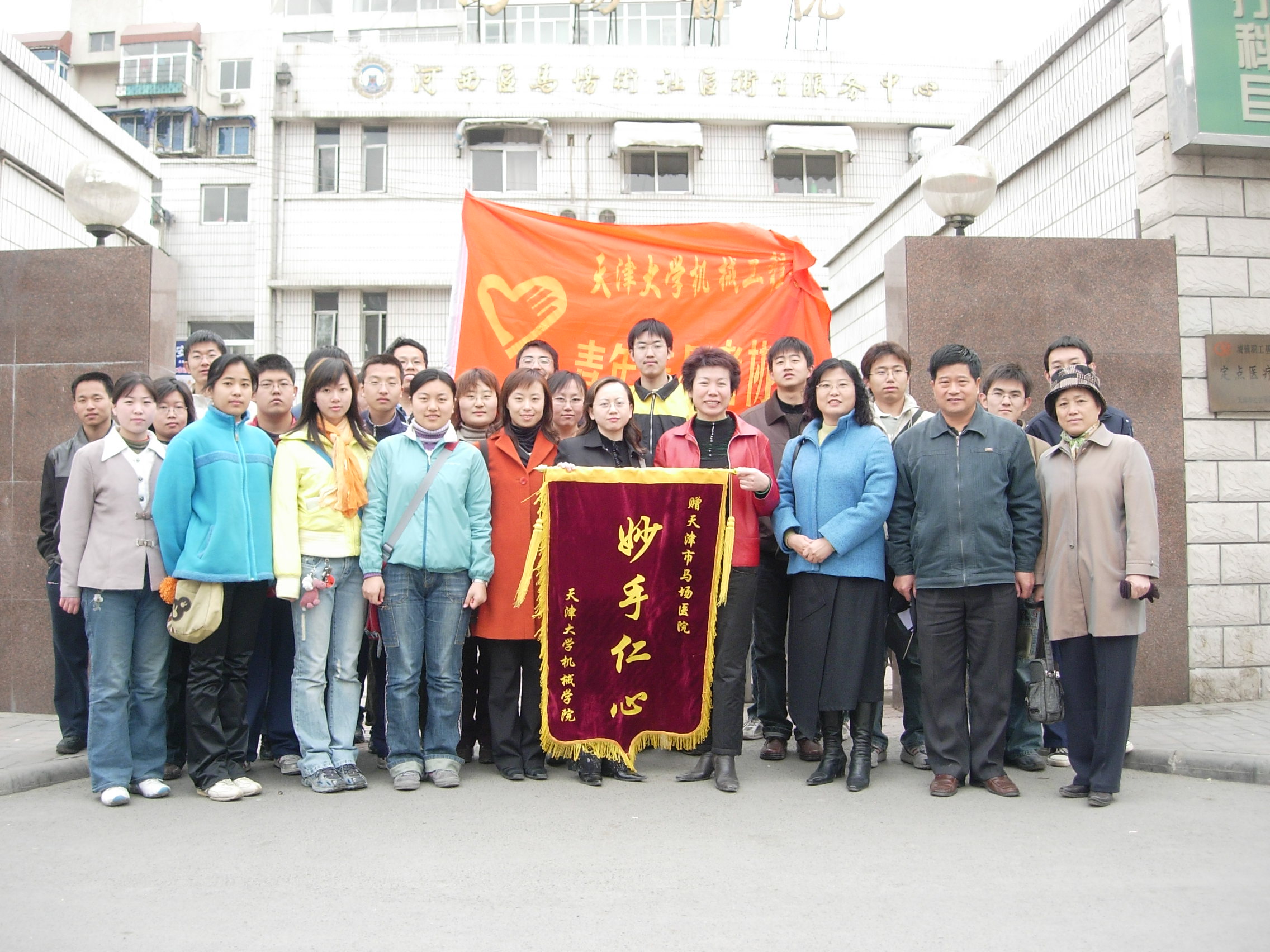 2006年3月26日,机械学院青年志愿者协会在院党委副书记汪菲老师和院团委吕静老师的带领下,组织各班学生代表到天津市河西区马场医院,看望重病在床的刘士钺老师,并开展座谈会,举行赠旗仪式和捐款仪式。本次活动还得到了天津市残疾人联合协会和马场医院的大力支持。