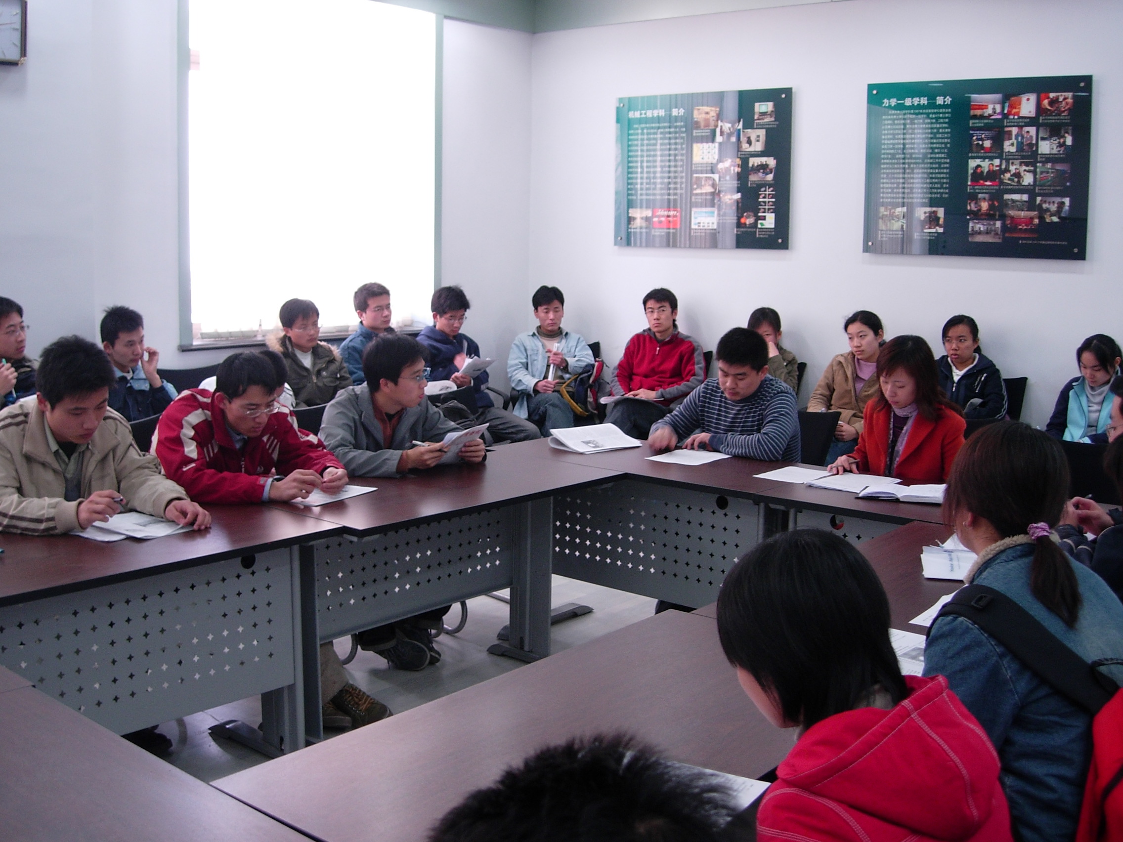 会上吕老师传达了学院党委的精神,对本学期的结对子活动作了详细的部署和安排,随后赵老师宣读了《机械学院先进性教育主题实践活动“树新学风 互帮互助”结对子工作条例(试行)》并对一些办法作了补充和说明。会上各年级支部书记和学习委员纷纷表示要将此次活动做精、做细、做实,真正为广大同学服务。