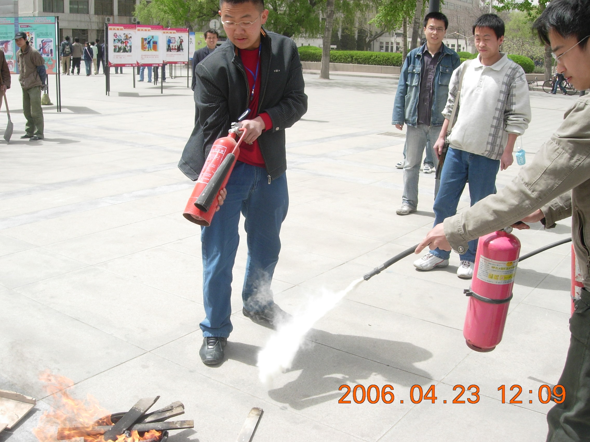 在现场互动环节,由两位主持人提问同学们随机抽出的一些有关消防知识的小问题。同学们踊跃回答问题,还不时引来一些在父母陪同下的小朋友的参与。此外,在专业人员的指导下,同学们还自己操作使用了灭火器,趣味性、实用性融为一体,加深了同学们对知识的理解。现场气氛热烈,可谓是本次活动的一个亮点。