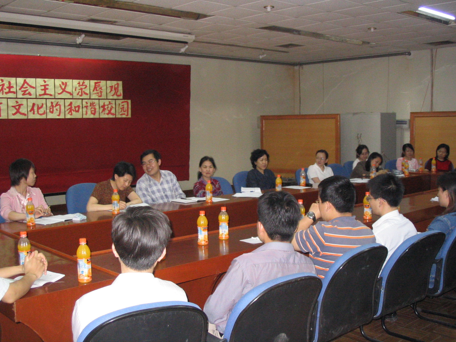 2006年5月19日下午三点,以“践行社会主义荣辱观 构建有文化和谐的校园”为主题的党日活动在科图一层报告厅举行。