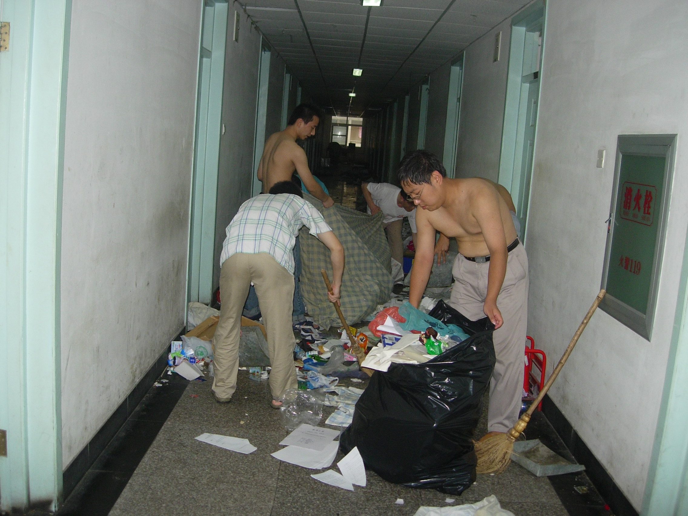 “四年前,我们搬进来的时候,宿舍舒适干净,四年后我们离开时,为了感谢母校,我们也要保持着它的整洁。正如那首诗‘轻轻地我走了,正如我轻轻地来……’希望我们所有人的努力能够为学弟学妹们起到教育作用!”2006届党支部书记樊延超这样说道。