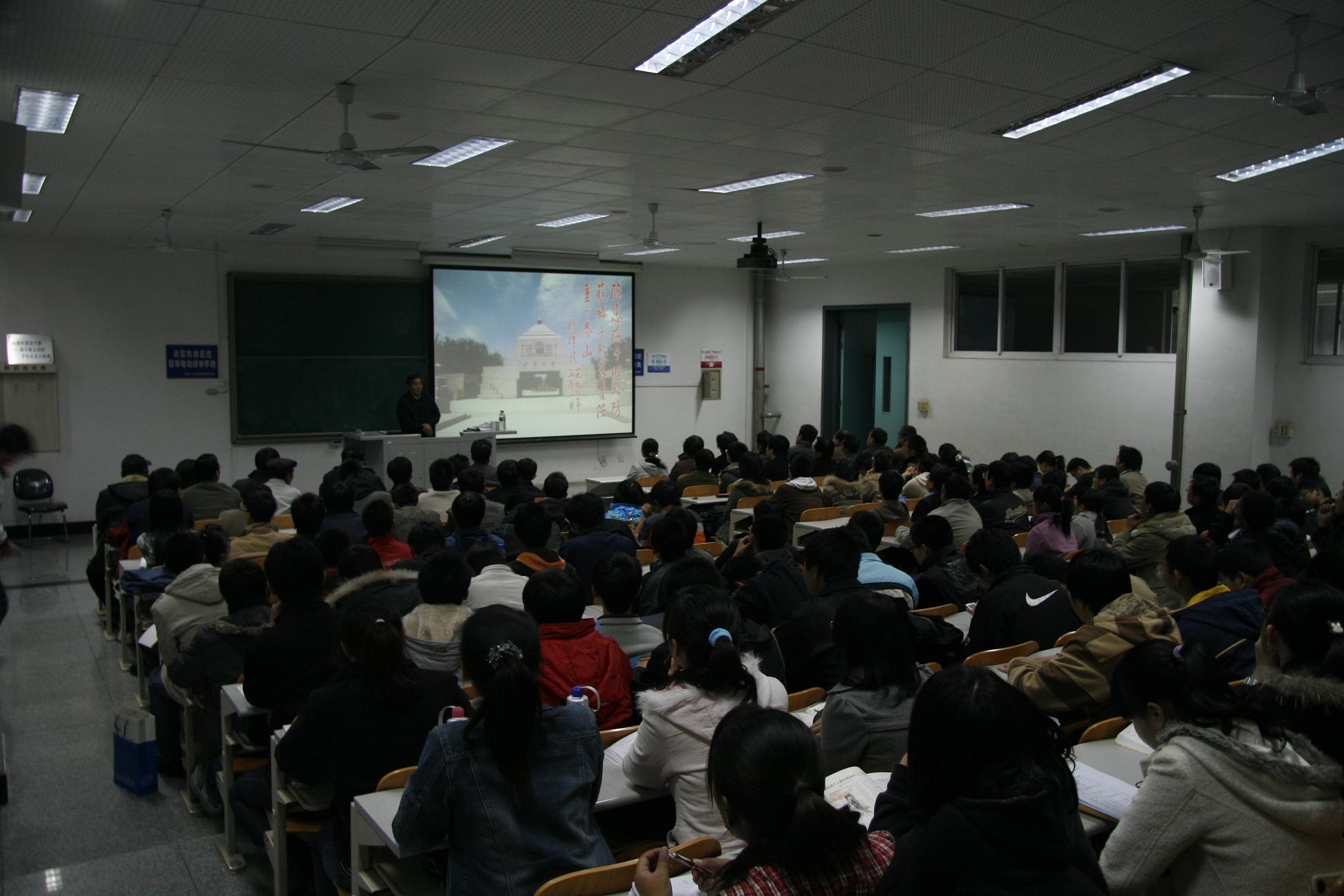 2008年11月21日下午4点,第24教学楼105大教室内座无虚席,机械学院部分师生认真倾听了学校保卫处防火科科长李宗明的消防安全讲座。会议由学院办公室主任张定昭主持,张老师指出,此次讲座旨在贯彻学校11月17日消防工作会议精神,提高全院师生消防安全意识,吸取上海商学院火灾教训,动员全员认真做好本单位火灾隐患排查工作,不留死角、不留隐患。学院主管安全工作的主要领导、各系级单位主要负责人、系级单位安全员,以及学生中各年级本、硕、博班长、团支书、宿舍安全员等180余人参加了此次讲座。