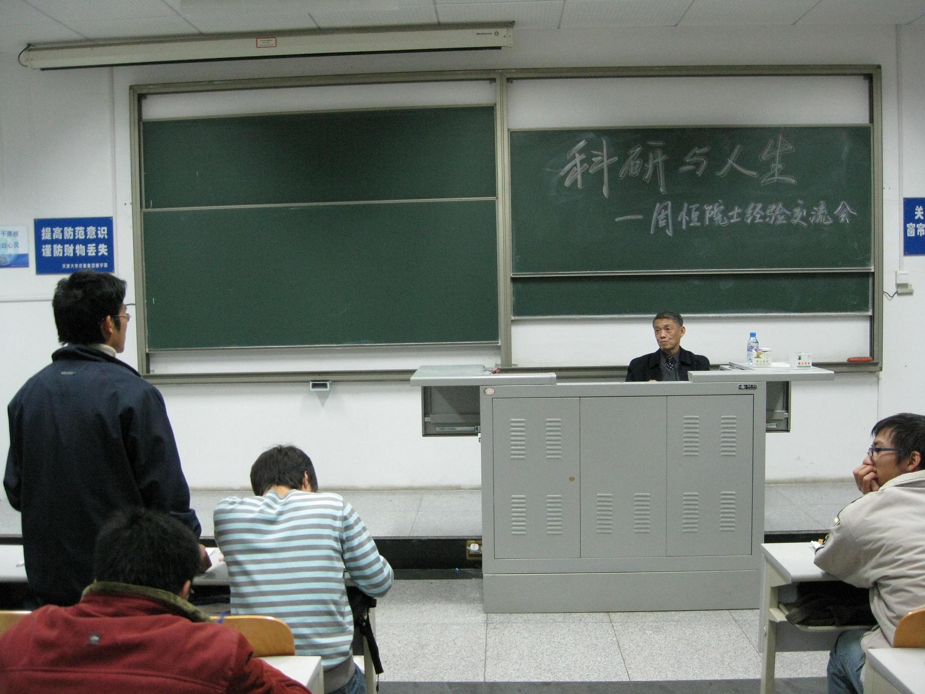 2008年11月19日晚七点,24楼大阶梯教室103室内座无虚席。机械学院著名的流体力学专家周恒院士应机械学院研究生会邀请,为全院博士生、硕士生、本科生带来了一场关于“科研与人生”的精彩讲座。