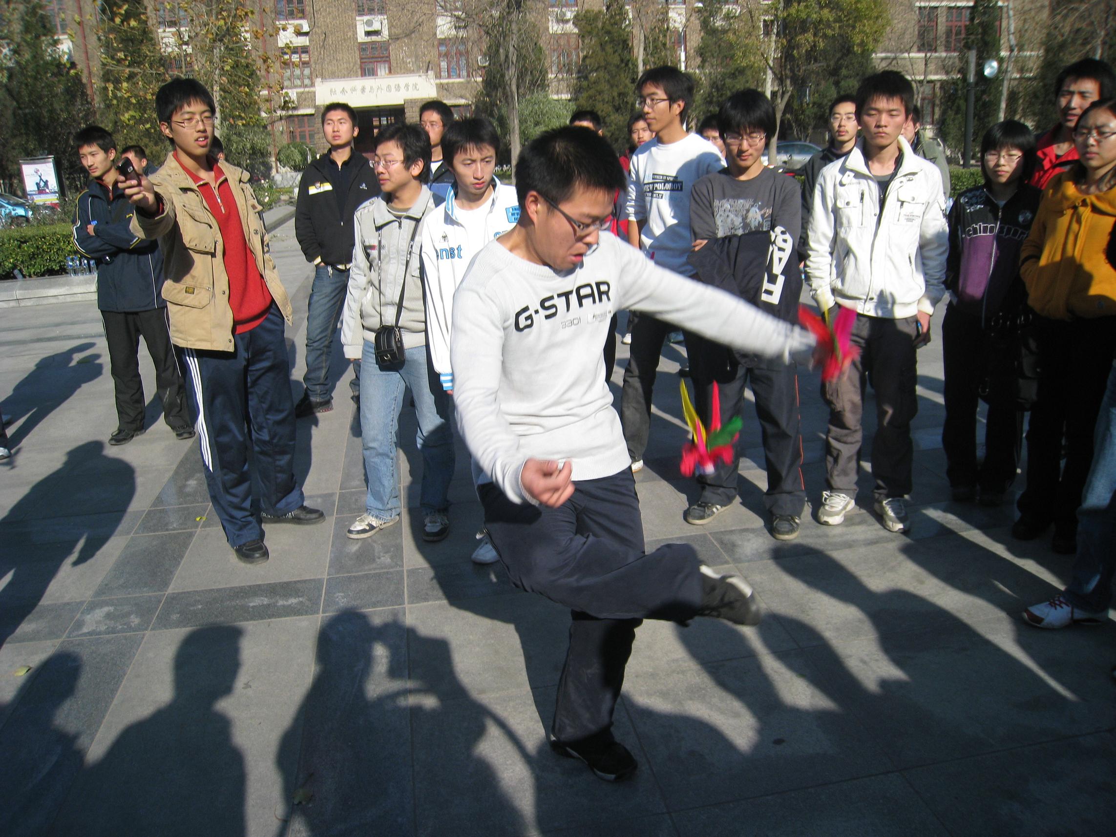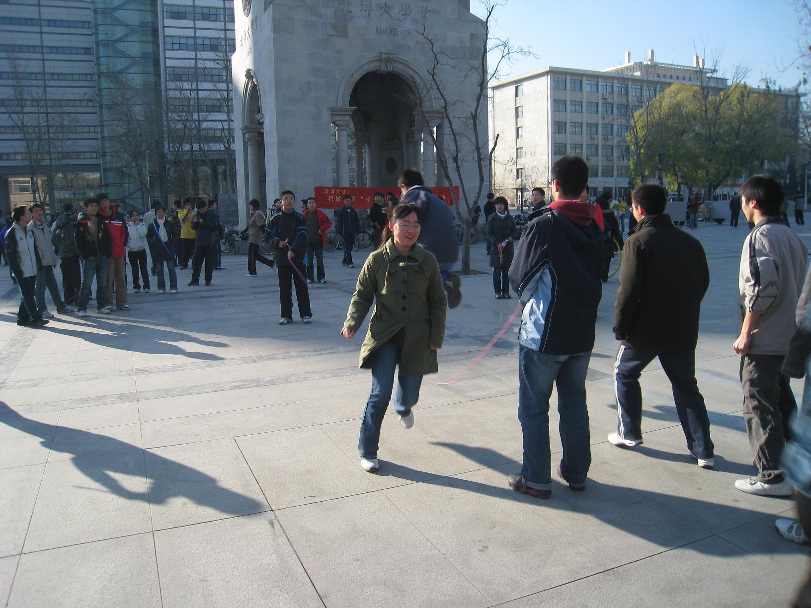 2008年11月29号,北洋广场上聚集了热情洋溢的机械学院的学子,丝丝寒意早已被大家的热情所驱散。由机械、材料、化工三院团委、学生会合办的“绳飞毽舞”跳绳毽球及呼啦圈比赛机械学院分赛正在这里如火如荼地进行着。