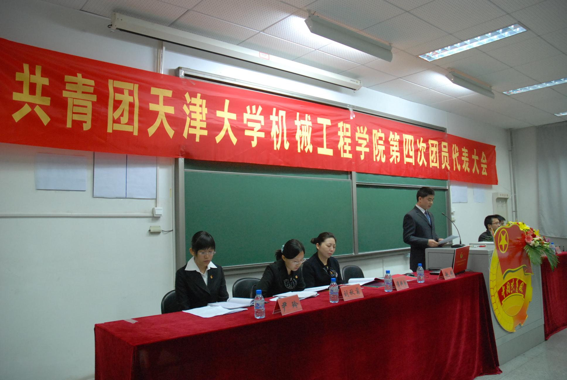 晚上8点45分,共青团天津大学机械工程学院第四次代表大会在《共青团团歌》声中胜利闭幕。晚9点30分,共青团天津大学机械工程学院第四届委员会在十楼会议室召开第一次全体会议。会议选举产生共青团天津大学机械工程学院第四届委员会书记和副书记。
