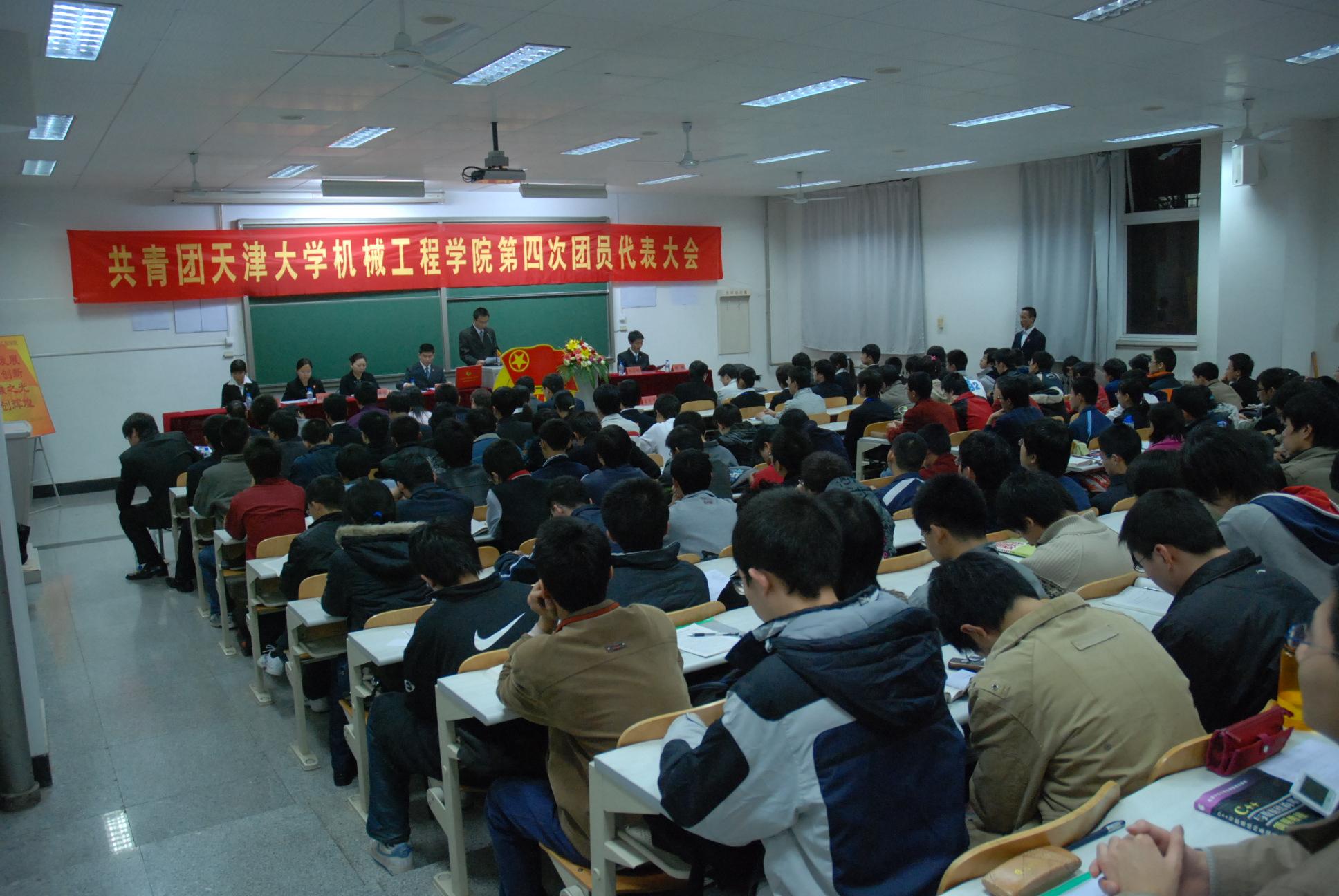 12月2月晚7点,中国共产主义青年团天津大学机械工程学院第四次代表大会在24楼207胜利召开。出席大会的领导有,天津大学团委副书记王阳同志、机械工程学院党委副书记汪菲同志。社外学院团委书记王用源同志、建工学院团委书记崔振平同志、信息学院团委副书记邵树彬同志、理学院团委李春意同志、药学院团委李晋馥同志以及各兄弟学院团干部出席了此次大会,全院168名各级代表参加了此次大会。