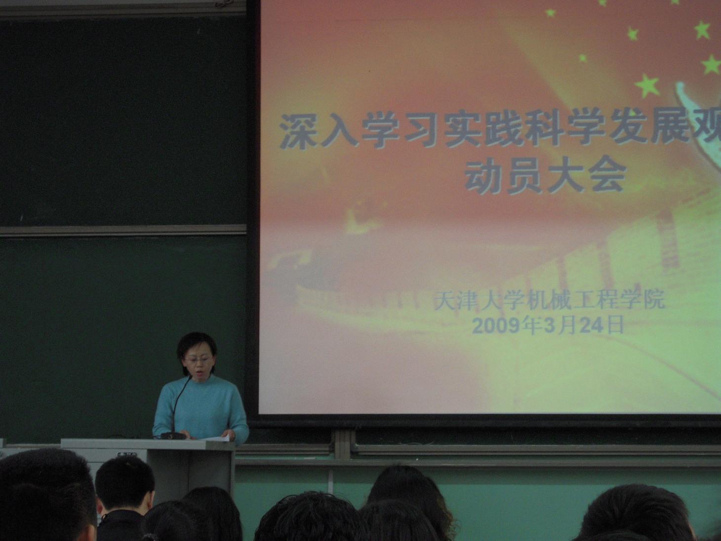 2009年3月24日中午12:30,机械工程学院深入学习实践科学发展观活动学生党员动员大会在东阶202隆重召开。学院党委副书记汪菲老师出席了本次大会并作动员报告,学院学生党总支委员以及全院所有本科生党员、研究生党支部委员参加了本次大会。