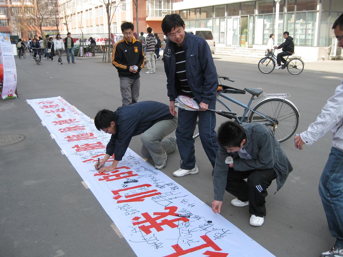 本次活动于上午九时拉开帷幕,活动地点为学五广场与学一广场。学五广场主要有无偿献血知识宣传与爱心签名活动,由机械学院红十字会负责。工作人员们在学五广场挂条幅、贴海报并向同学们分发无偿献血知识手册。签名活动在学五广场同时举行,同学们踊跃参与,奉献自己的爱心。凡签名的同学均获赠精美礼品一份。学一广场为采集点,由天津市血液中心负责,血液采集从上午九时开始,到下午五时结束。