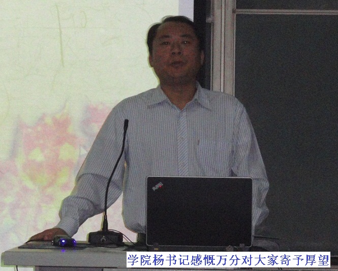 最后,机械学院杨志永副书记发表了总结讲话,杨书记是我机械学院本硕博连读毕业的优秀师长,他在校期间一直保持专业第一的成绩,并为祖国的科技建设和西部大开发事业做出过卓越贡献。杨书记首先讲到,他对这次国奖评审会感到十分欣慰,并对同学们在校表现给予充分肯定,从展示中可以看出,机械学院学生每年都取得新的进步,值得学院的老师们骄傲和自豪,这其中也包含着各级辅导员的辛勤付出,他们在自己岗位上默默的奉献,为学生成长做坚实的铺路石;其次,他谈了评审此次展示的感受,同学们优秀成绩的保持以及从成绩一般到成绩优异的突飞猛进,都源于同学们对本专业的兴趣与热爱,源于不断地探索创新,并把知识付诸于实践,从实践中增长才干;最后杨书记对在座的大学生们提出自己的期望,希望大家要在学习、社团和工作中根据自己的实际情况,寻求自己的方法,要全面发展自己,努力提升自身综合素质,做有素质、有道德、有思想的“机械人”,脚踏实地、实是求是,胸怀天大的志向,承担天大的责任!