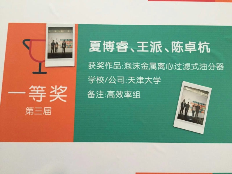 恩布拉科创新大赛由全球封闭式制冷解决方案领导者恩布拉科与中国制冷学会联合举办,旨在挖掘创新方案及优秀人才,以推动行业的发展。大赛分为四个专业组,分别就高效率、低噪音、成本优化、智能化四个方面征求制冷创新解决方案。包括天津大学、浙江大学、西安交通大学等30多所高校的同学组队参加了此次竞赛。4月9日,决赛答辩在上海举行,我校组合在答辩过程中思路清晰、回答问题全面,并凭借产品“泡沫金属离心过滤式油分离器” 99.14%的高效率荣获高效率组第一名。