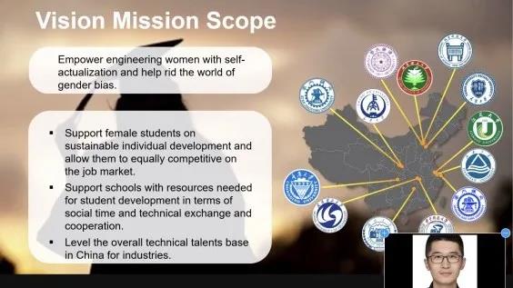 首先,2021年度荣获康明斯林慰梓博士奖学金的9位同学分别从个人简历、科研成果、社会实践、未来女工程师的看法四个部分进行了个人分享,并与康明斯公司的参会领导进行了交流。其中,王恬在给学弟学妹们经验时强调,做科研必须要投入足够多的时间,多读文献,增加自己主观能动性。