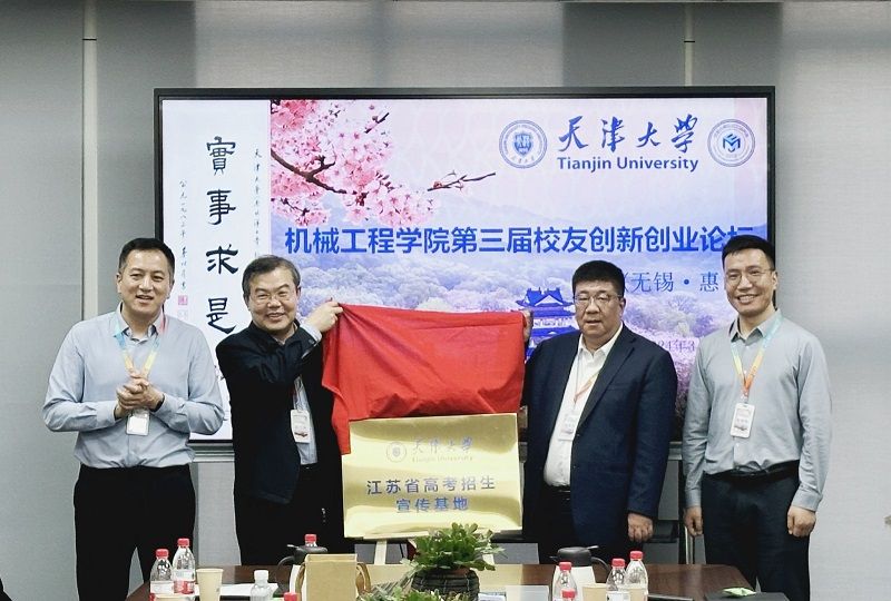 无锡惠山经开区管委会副主任沈伟良、天津大学机械工程学院党委书记孙月海、副院长刁海、无锡研究院常务副院长银增辉共同为“江苏省高考招生宣传基地”揭牌。