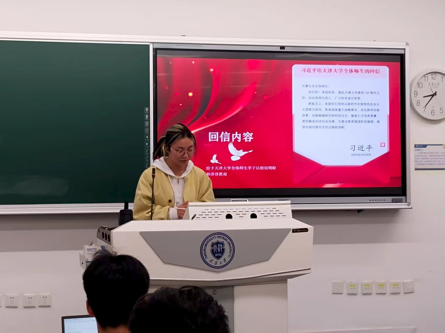 各教工党支部在学院党政领导的带领下组织开展集中学习,将回信精神融入教育教学与科研攻关实践。学院教师表示,要牢记习近平总书记的嘱托,坚持立德树人,将思政工作贯穿教育教学全过程,培养更多具有家国情怀、创新精神的卓越工程人才。同时,要立足自身科研岗位,加强基础研究和科技攻关,为把天津大学建设成为世界一流大学,为教育强国、科技强国建设贡献全部力量。