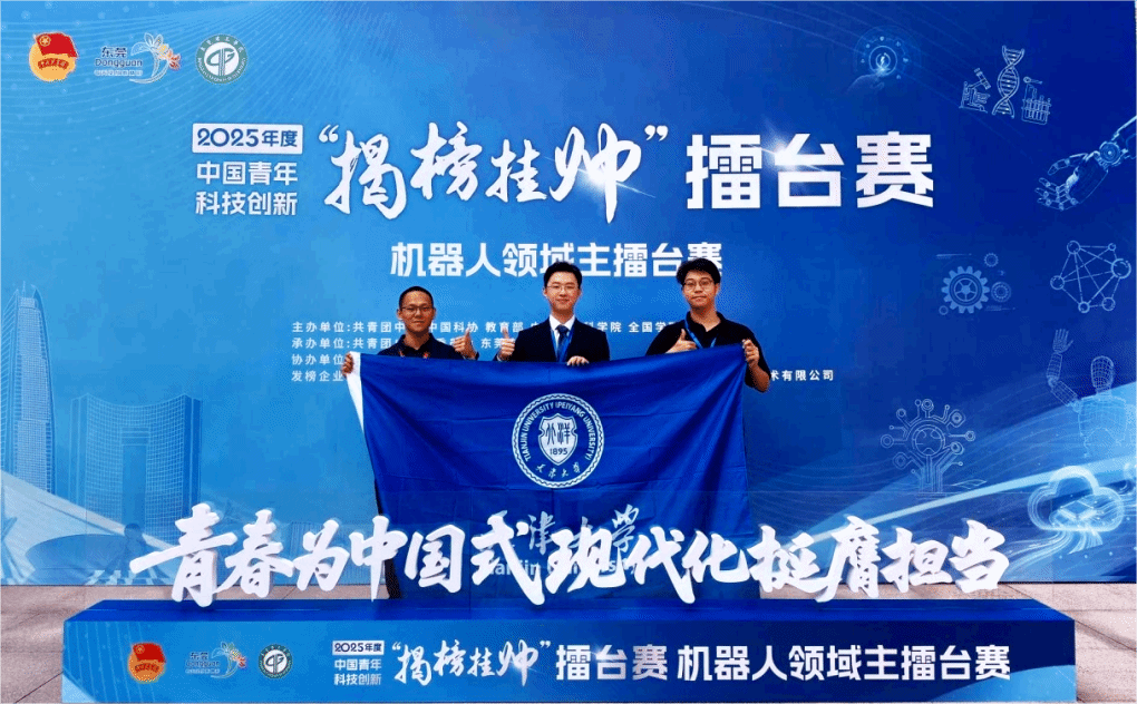 (赫连乾则 冯展宇 庄哲明)10月10日至12日,第十九届“挑战杯”全国大学生课外学术科技作品竞赛框架下的2025年度中国青年科技创新“揭榜挂帅”擂台赛机器人领域主擂台赛在广东东莞举行。依托机构学与机器人系统实验室,由天津大学孙涛教授、天津市天津医院刘忠玉主任、南开大学人工智能学院马涛助理研究员联合指导,基于新工科项目制课程作品,我院机械工程系硕士研究生赫连乾则团队《四自由度全周期踝关节康复机器人系统》项目斩获特等奖。