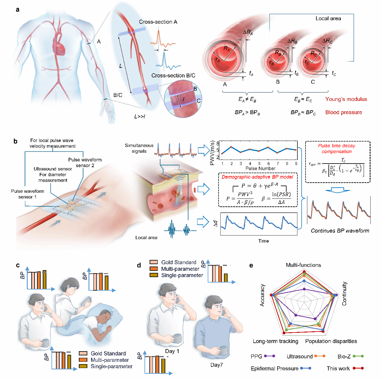 这项技术突破了无袖带血压监测的频繁校准难题和人群适配瓶颈,为可穿戴医疗设备的临床转化奠定了重要基础,未来有望广泛应用于高血压筛查、心血管疾病预警和管理等场景,助力个性化医疗和健康管理新模式的发展。