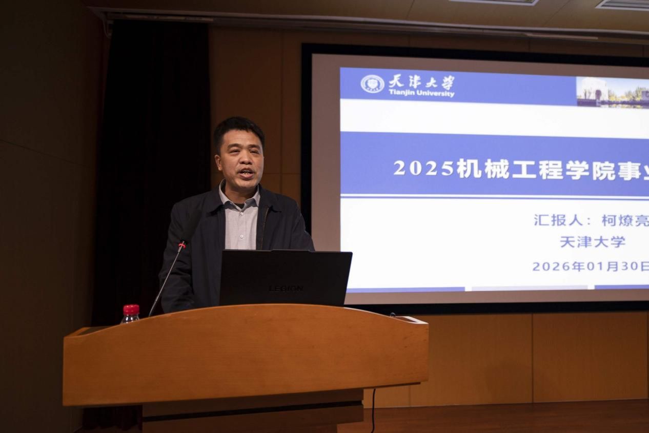 (通讯员:葛笛)2026年1月30日,天津大学机械工程学院隆重召开2025年度工作总结暨表彰大会。学院党政领导班子全体成员、退休教师代表、受表彰教师及全院教职工齐聚一堂,共同回顾奋进足迹,擘画发展新篇。大会由学院副院长邓帅主持。